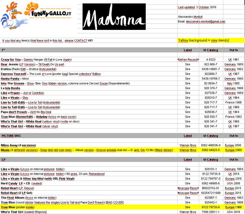 Se volete scaricare la lista: https://www.funkygallo.it/liste/madonna-2-october-2016.pdf